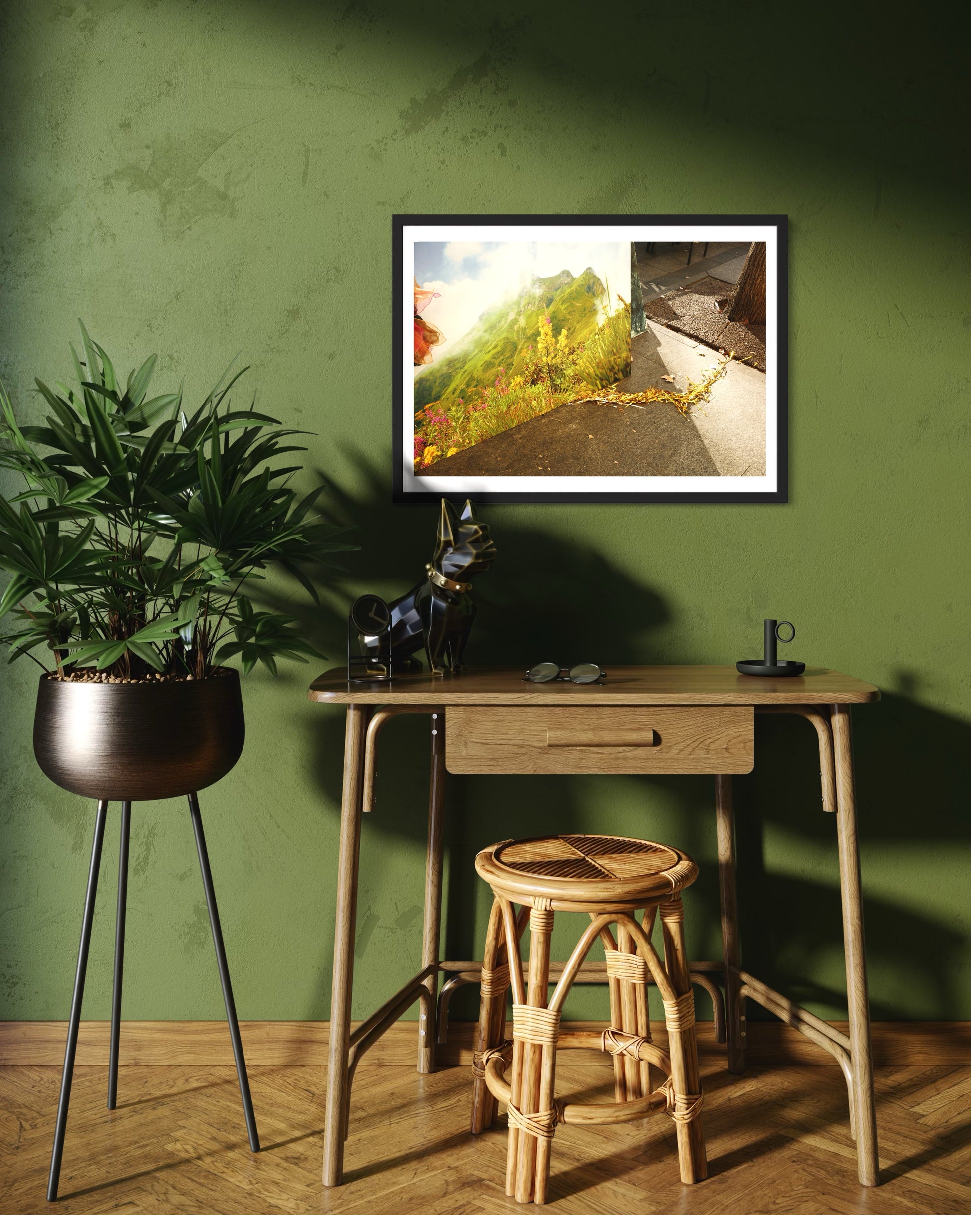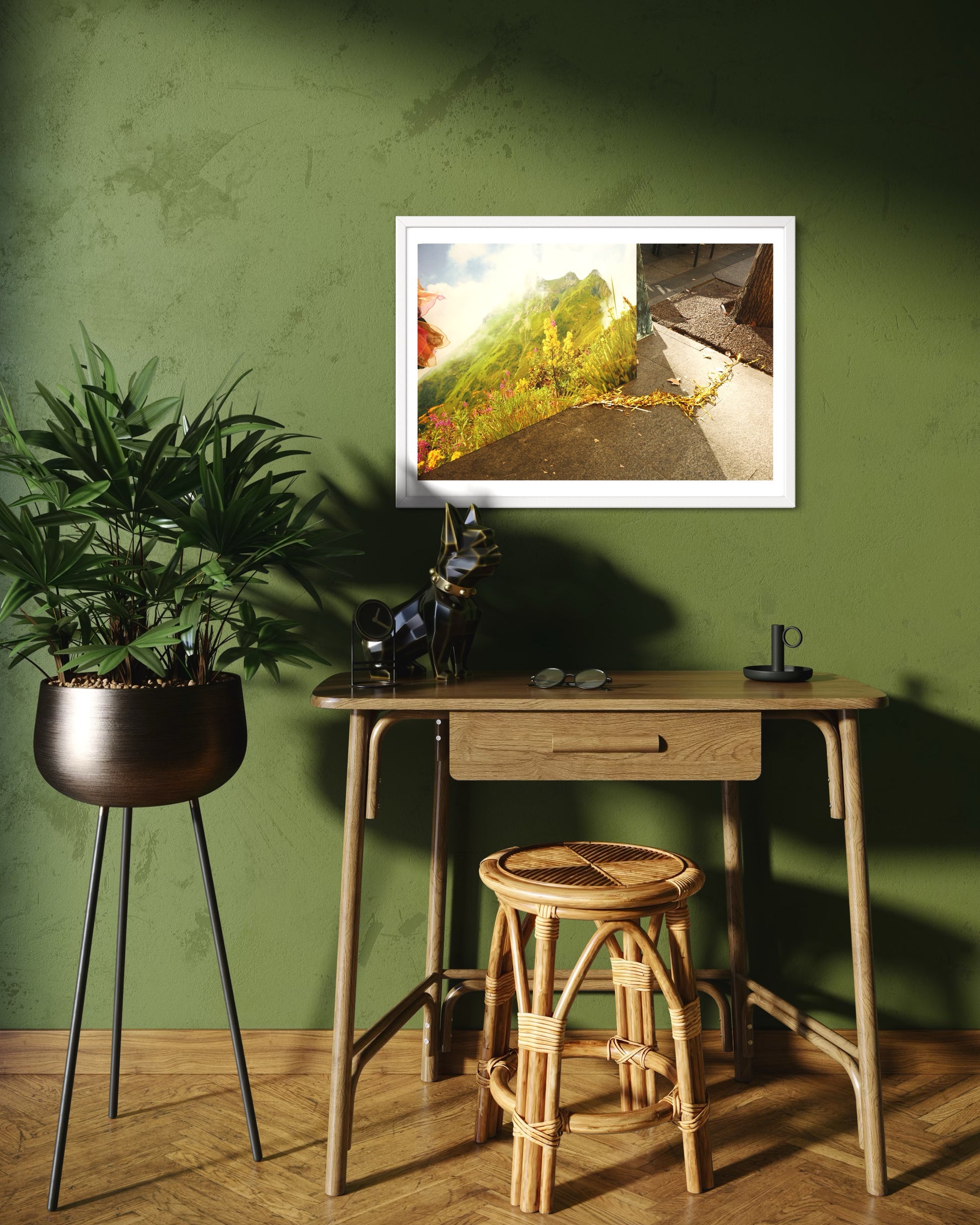 Con marco: La impresión se monta cuidadosamente a mano en un marco de MDF, un material elaborado con fibras de madera prensadas y resinas sintéticas. Es ligero, resistente y perfecto para interiores. Incluye fijaciones traseras, por lo que llega lista para colgar. Además, cuenta con una lámina transparente de poliestireno que protege la imagen sin alterar su aspecto visual.