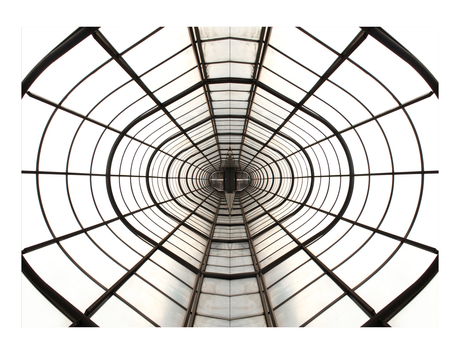 Estación de metro ricaurte en la rápida y caótica Bogotá/Colombia, una fotografía de su techo duplicada, forman un túnel que da vértigo y casi miedo.